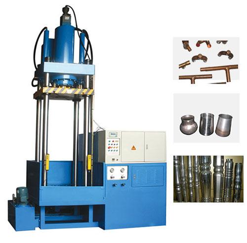 速度快,效率高。能耗低。帶移動滑台,方便上、下料,能有效降低機器高 度 ,提高機器穩定性、 可靠性。帶退料、補料油缸,能實現退料功能和脹形補料功能,提高材料的脹形範圍,特別適用於複雜的零件的水脹成形。液壓係統采用二通插裝閥控製,壓力損失小,動作穩定可靠。